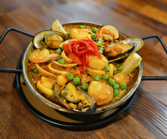 Serves 4. Classic Spanish paella with mussels, shrimp, scallops, clams, calamari, and seasonal vegetables. From $69.99. 24-hour notice required.